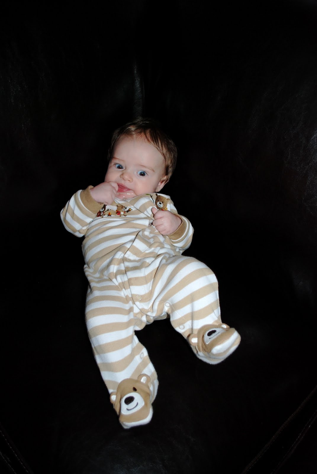 Bean is doing great. He is working hard at sprouting hair, blowing spit bubbles, grabbing his toes and being really, really ridiculously good looking. He's succeeding on all counts. Plus, he has developed quite a repertoire of activities whilst nursing: